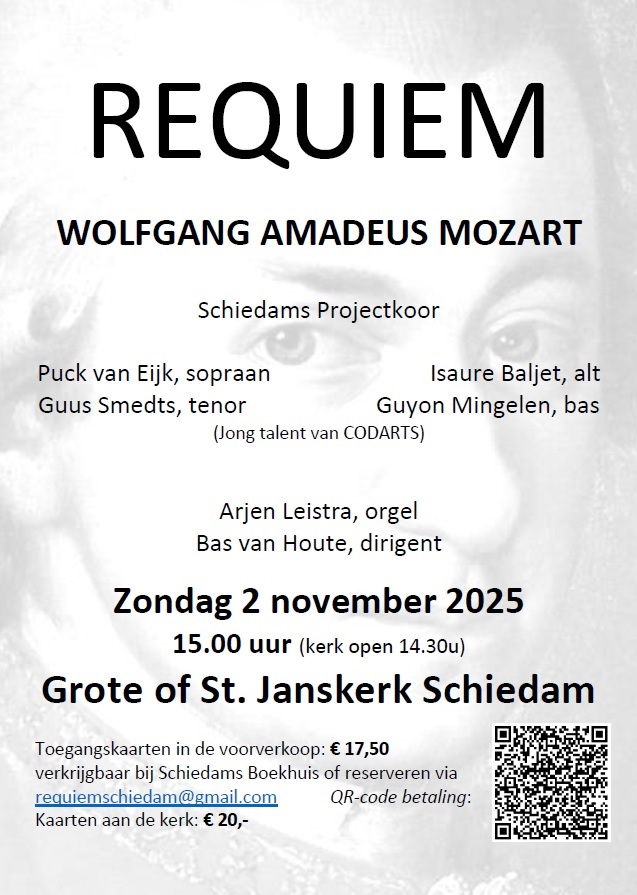 Het Schiedams Projectkoor zingt het aangrijpende Requiem van Wolfgang Amadeus Mozart. Naast dit bekende en geliefde werk klinkt deze middag van componist Mozart ook het Ave